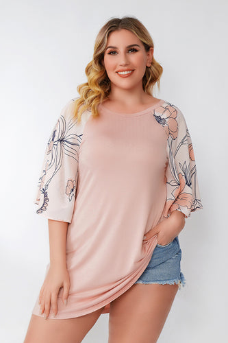 Plus Size Floral Mesh Short Sleeve Round Neck Tee