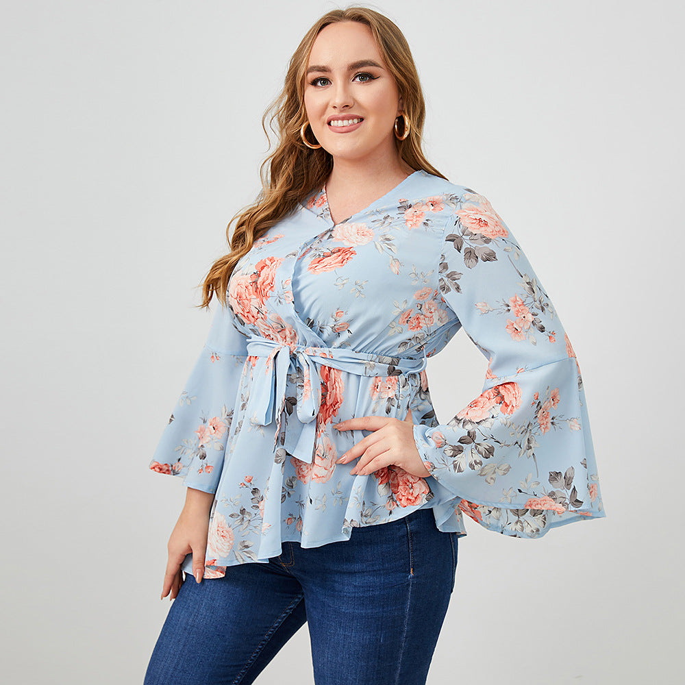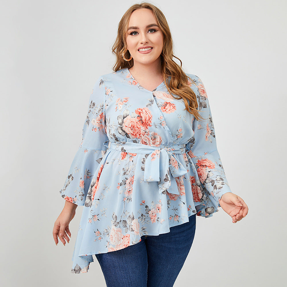 - Features: Tie-waist, flare sleeves, asymmetrical hem, no buttons, no snaps