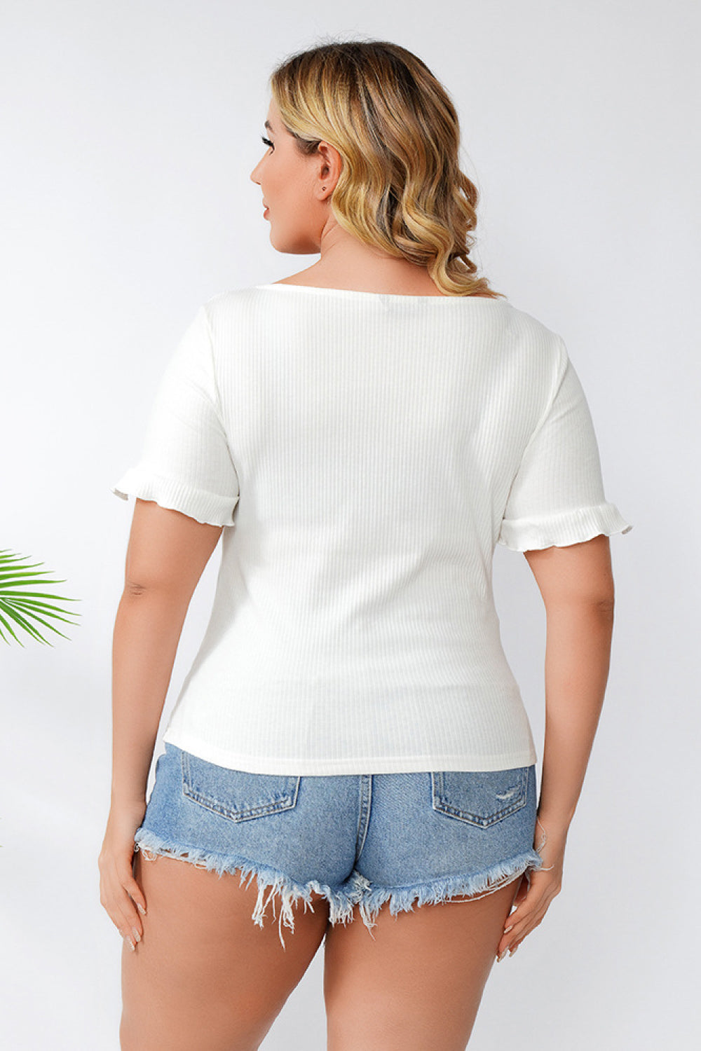 - Features: Short sleeve, eyelet drawstring knot, ruffle sleeve hem