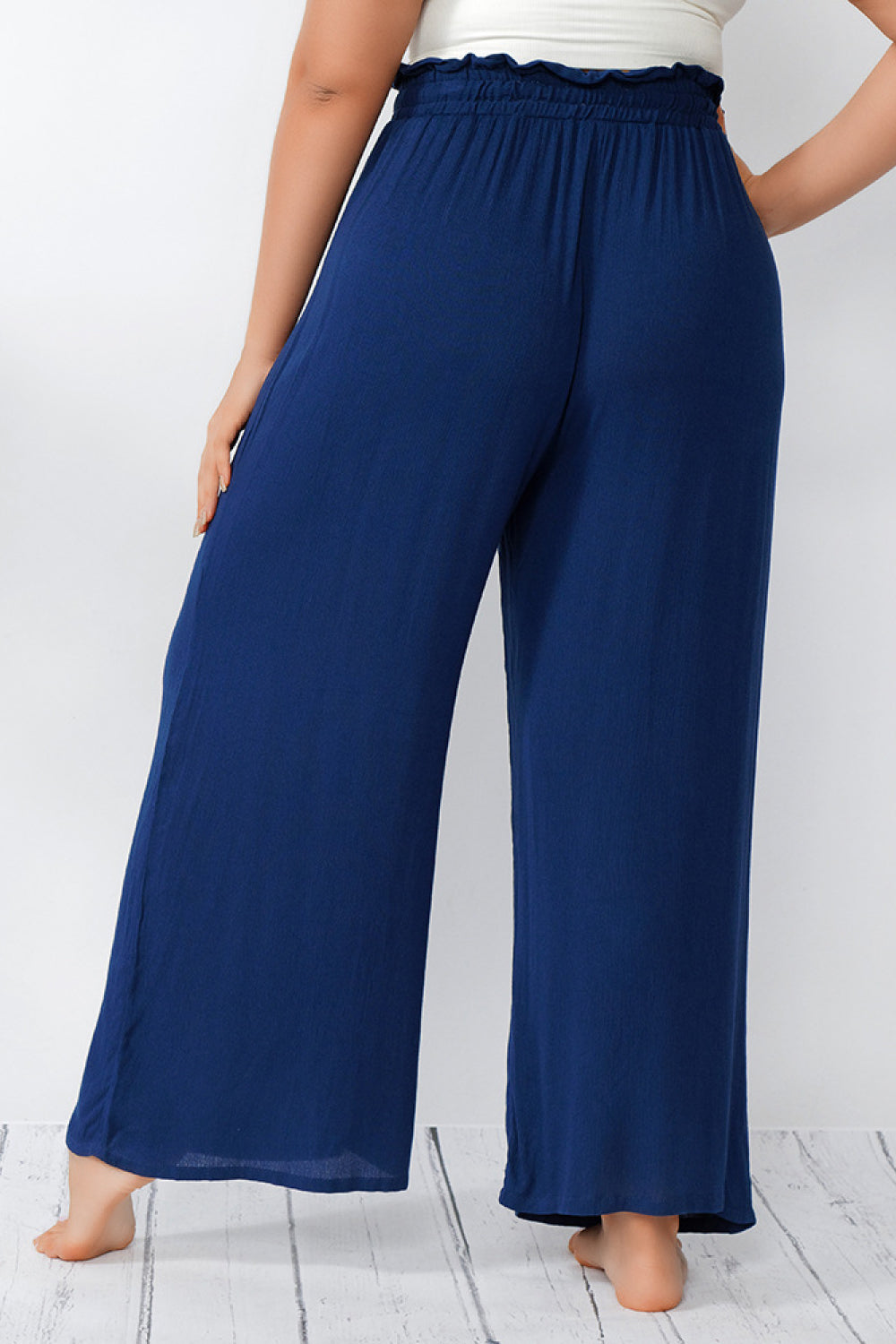 - Features: High waist, Paper bag waist, drawstring, wide leg, full length